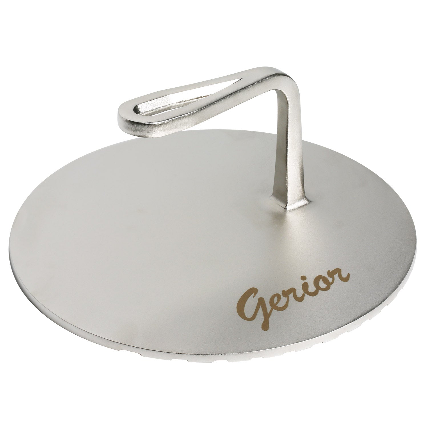 ✅ Size and Weight: 8.75-inch diameter bacon press and fits perfectly in your 12" cast iron skillet. The 3.7lb is just the perfect weight to use on a grilled sandwich, allowing for excellent contact with the grill, and producing perfect sear marks on your meats and vegetables. Gerior Grill Press helped to ensure the even cooking of your food, particularly with items like burgers and bacon.