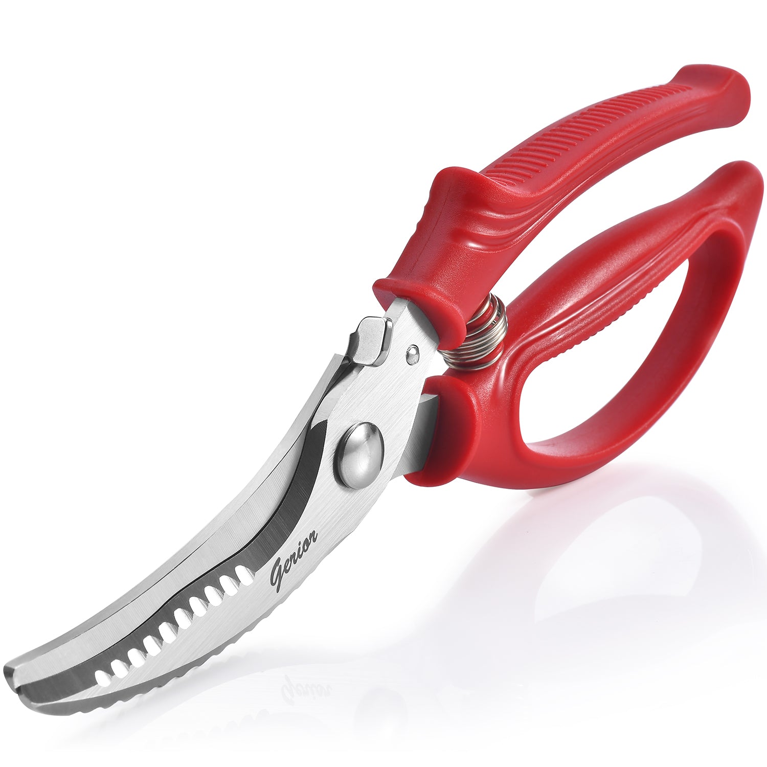 Heavy Duty Poultry Shears - Kitchen Scissors for Cutting Chicken, Poultry, Game, Meat - Chopping Vegetable - Spring Loaded - Red