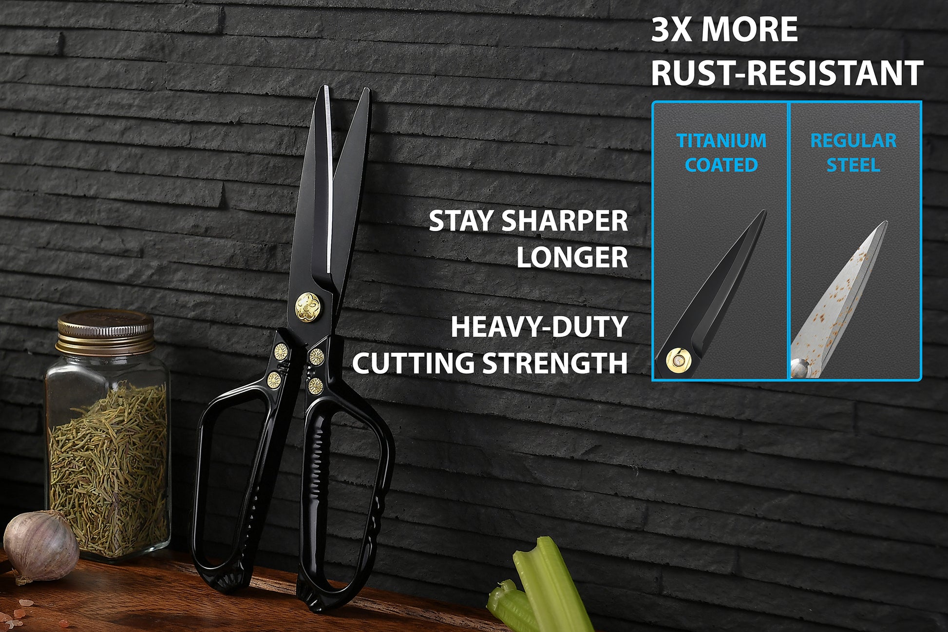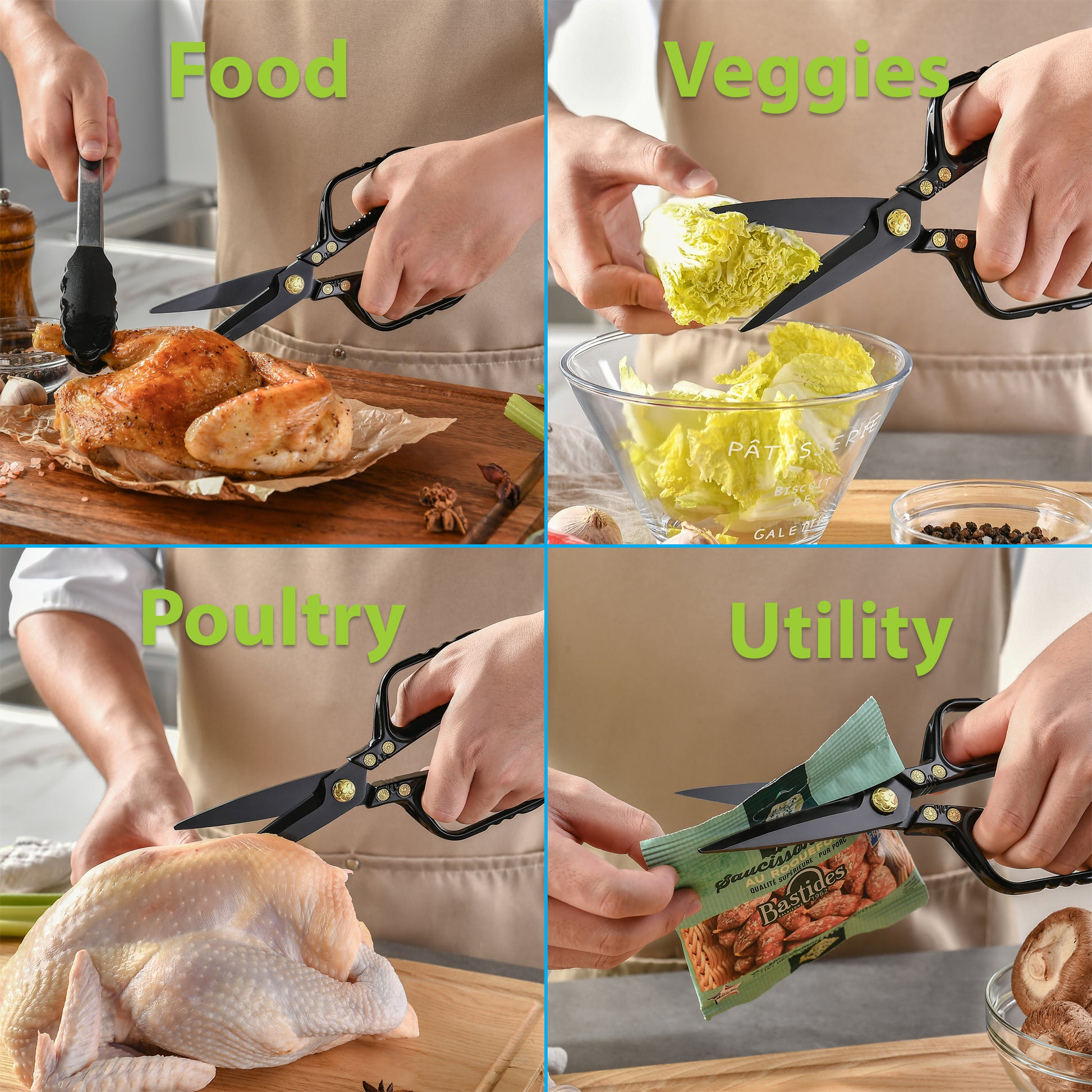 - [Heavy Duty & Durable Stainless Steel Construction] Crafted from premium stainless steel, our heavy-duty kitchen shears stay rust-free and sharp for years. Designed for strength and precision - ideal for poultry shears or tough meat cutting.